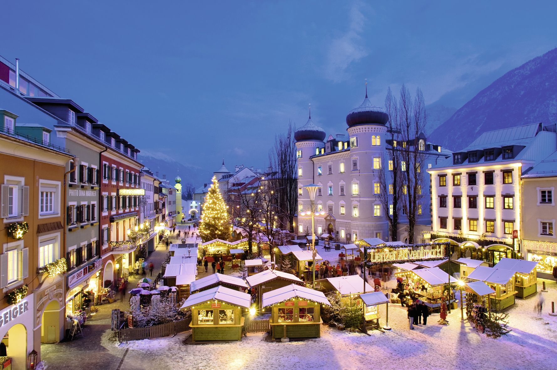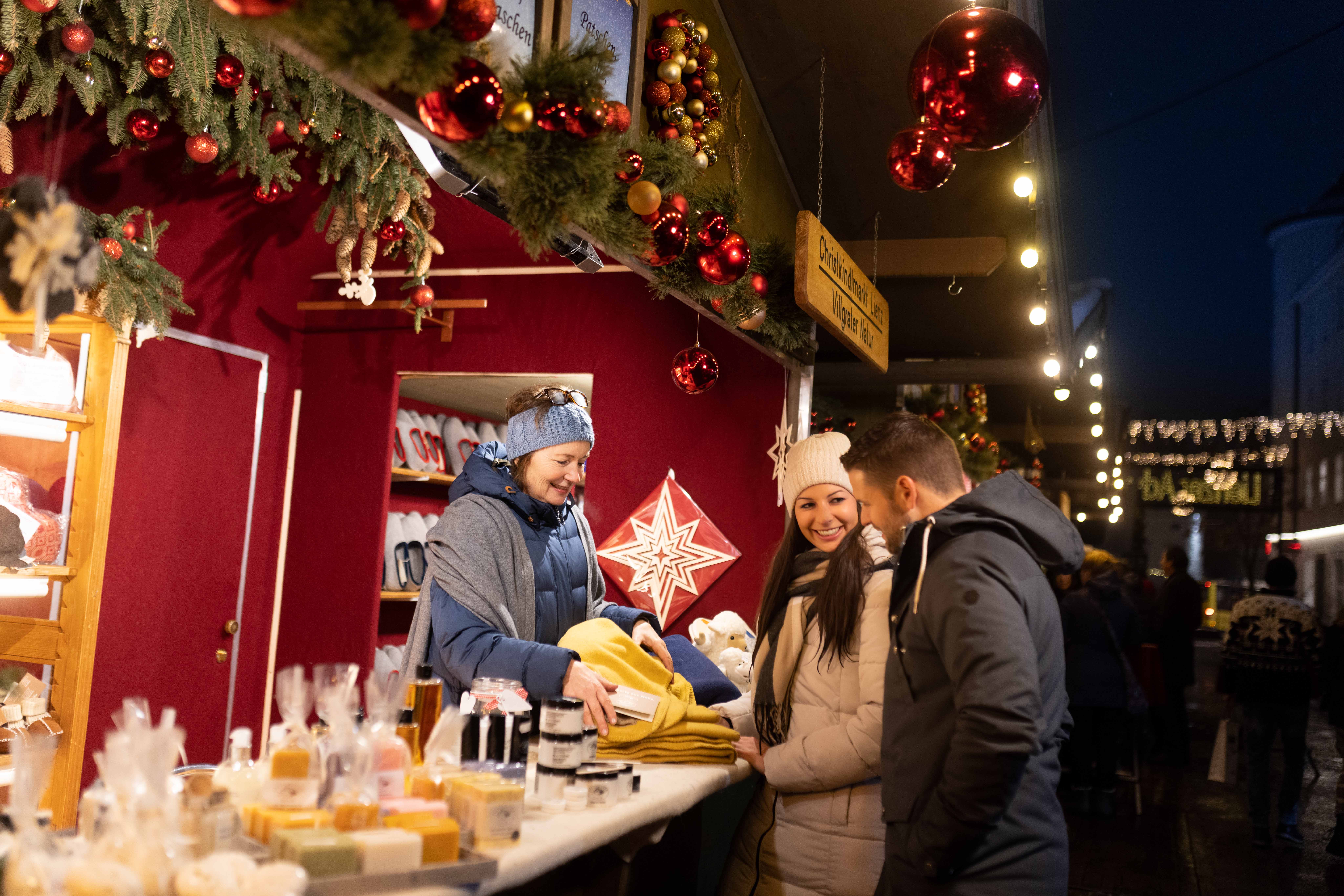 Advent in Lienz - einmal wieder Kind sein! Unter diesem Motto verwandelt sich der Hauptplatz und die Liebburg, das Rathaus der Stadt, in der Vorweihnachtszeit zum einzigartigen Lienzer Adventmarkt: 35 kunstvoll dekorierte Stände, Lichterketten, Feuerstellen, der Duft von Lebkuchen, Kiachln, Glühwein und heißer Tee, begleitet von stimmungsvollen Klängen - das sind die Zutaten, die den Lienzer Advent zu etwas Besonderem machen. Originelle Geschenksideen, Christbaumschmuck, traditionelles Handwerk und kulinarische Schmankerln machen den Adventmarkt zum geselligen und stimmungsvollen Treffpunkt für die ganze Familie; und mit etwas Glück beginnt währenddessen der Schnee leise zu rieseln…